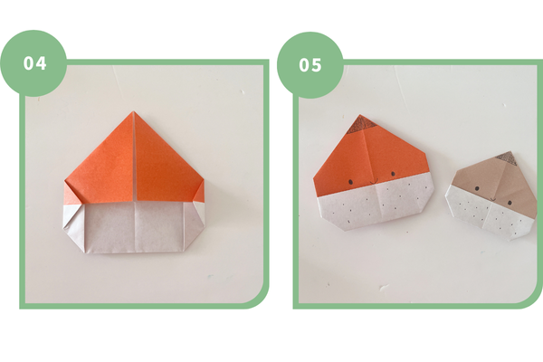 4. 左右に出ている角をそれぞれ内側に谷折りする