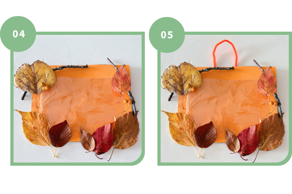 製作の前に、園庭や公園遊びで秋の自然を子どもたちと一緒に探し、落ち葉や枝などの材料を拾っておきましょう。