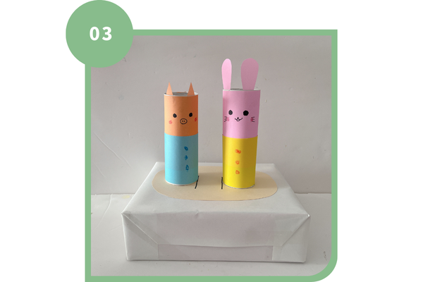 2.トイレットペーパーの芯に画用紙を巻いて貼り、好きな動物を作る