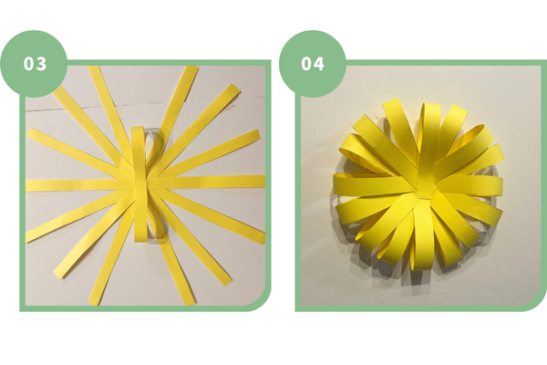 1.黄色の色画用紙を1.5cm幅で細長く切る