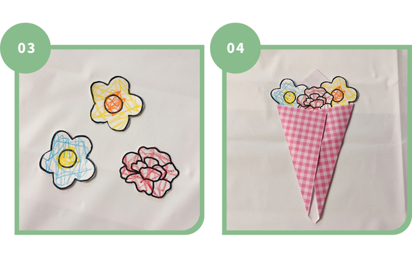 母の日の製作ということでカーネーションを取り入れることもありますが、お花の色は子どもの好きな色で表現できるよう声をかけていくことが大切です。