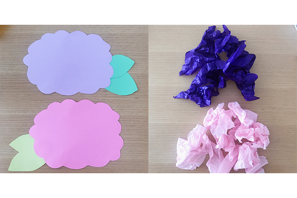 梅雨にちなんだ製作遊び~お花紙で紫陽花~